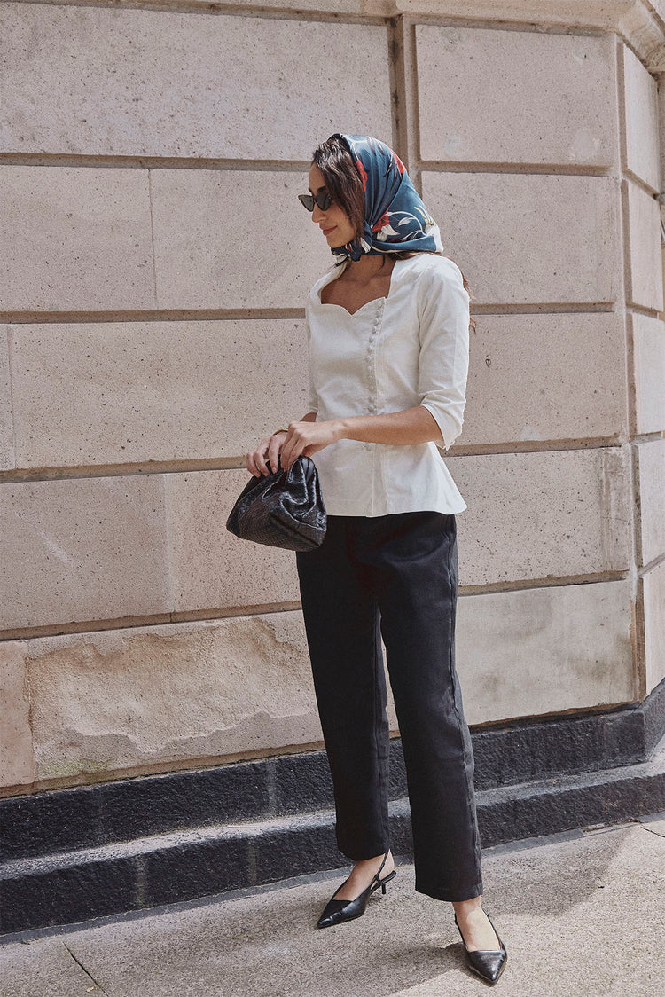 The Amalia linen pant is tailored to perfection, featuring a wide waistband that accentuates the waist and side pleats for a sophisticated look. Crafted from 100% linen.